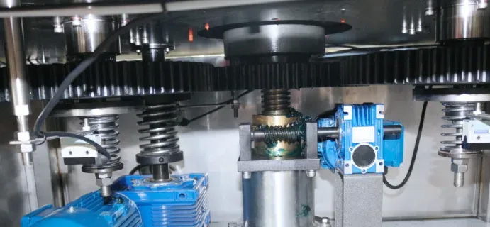 ■人性化的設計:參考全球頂級旋蓋機廠家AROL(克朗斯旋蓋專用配套商)的設計結構,配套自動電機升降(觸摸屏或點動按鈕)+半自動手柄升降調(diào)節(jié)的模式,調(diào)整規(guī)格方便快捷。目前市面上同類旋蓋機要么只能手動調(diào)節(jié),無自動升降功能或者采用三角皮帶傳動,不通電無法進行手動升降,調(diào)整較為繁瑣。