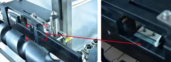 ①旋蓋機配備倒瓶、卡瓶檢測開關,當出現(xiàn)倒瓶或者卡瓶時設備自動停機,以免損壞麻花或者星輪。