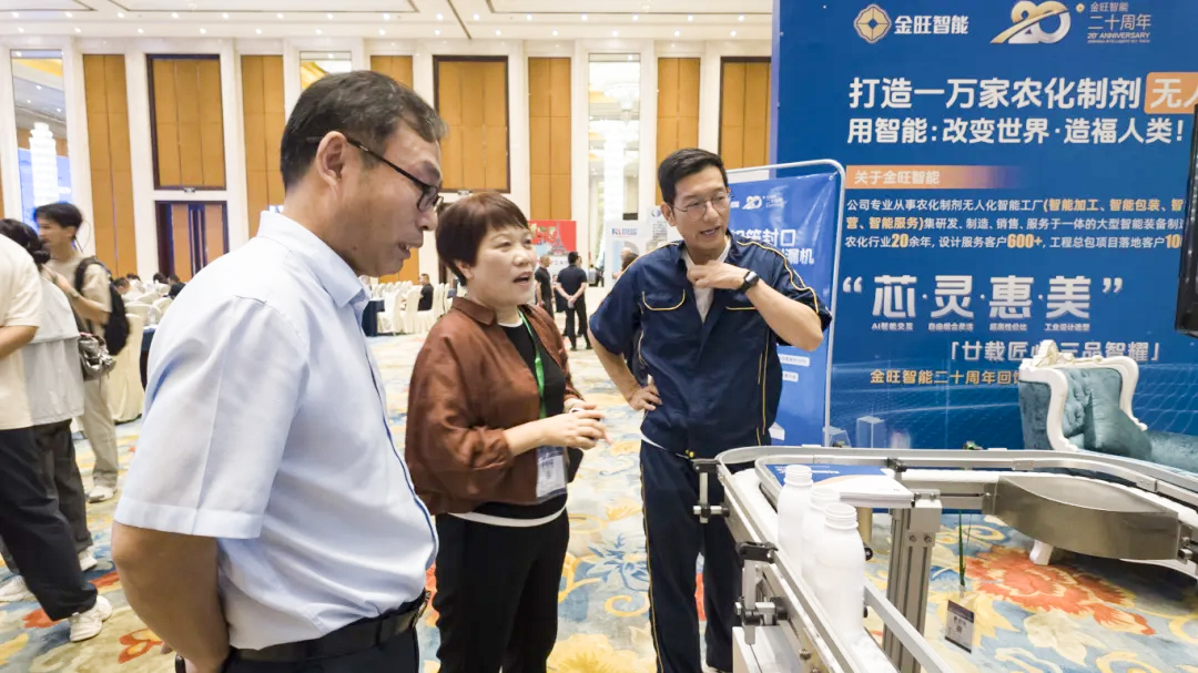 【中國(guó),合肥】2025年9月28日 – 在“2025第二屆農(nóng)藥制劑加工技術(shù)發(fā)展交流會(huì)暨農(nóng)藥助劑應(yīng)用培訓(xùn)會(huì)”上,金旺智能與眾多行業(yè)專(zhuān)家、技術(shù)精英齊聚合肥,共話(huà)前沿技術(shù)。本次,我們深入制劑研發(fā)與生產(chǎn)的核心場(chǎng)景,帶來(lái)AI雙頭灌裝機(jī)、AI碼垛機(jī)器人及AI鋁箔封口測(cè)漏機(jī)三款智能裝備,旨在為破解制劑企業(yè)“從實(shí)驗(yàn)室到貨架”的全鏈條效率與品質(zhì)難題,提供全新的智能化思路。