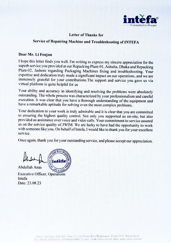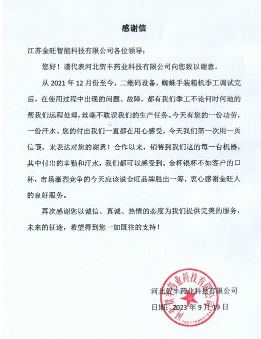 以客戶為中心,重視客戶需求,全力以赴,使命必達(dá)的高品質(zhì)服務(wù),是金旺智能一向的追求。踏至紛來(lái)的感謝信也證明了金旺智能的言行一致。