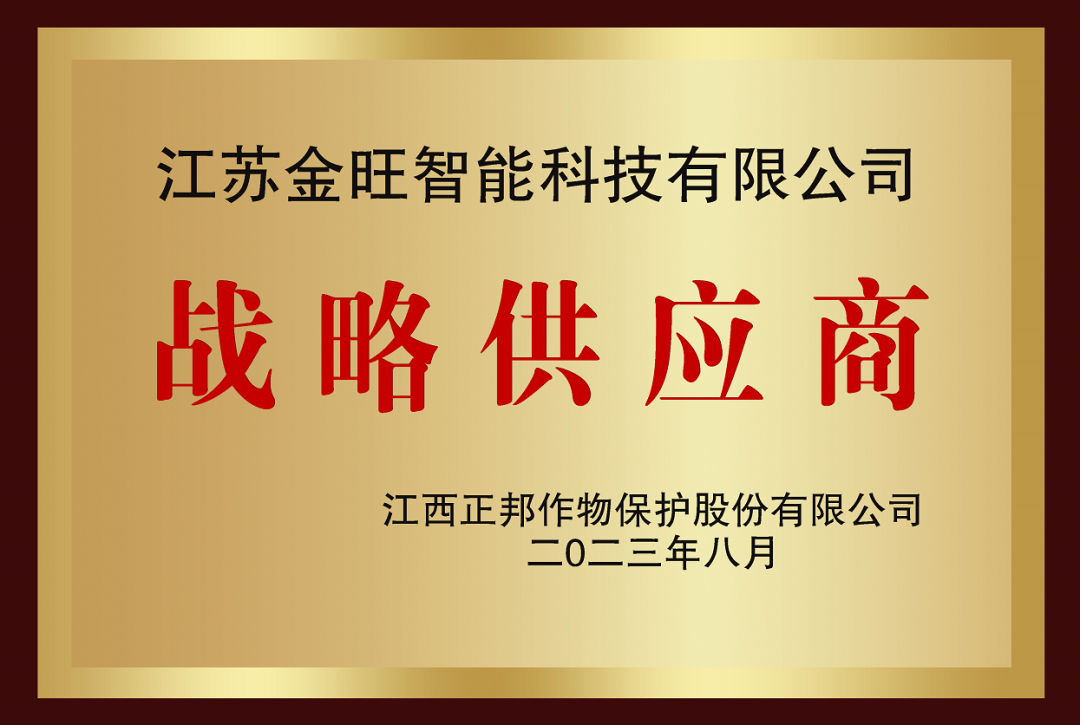 近日,金旺智能榮獲重要客戶正邦作物年度“戰(zhàn)略供應(yīng)商”稱號。