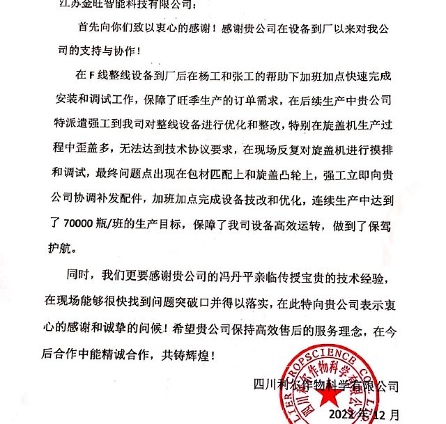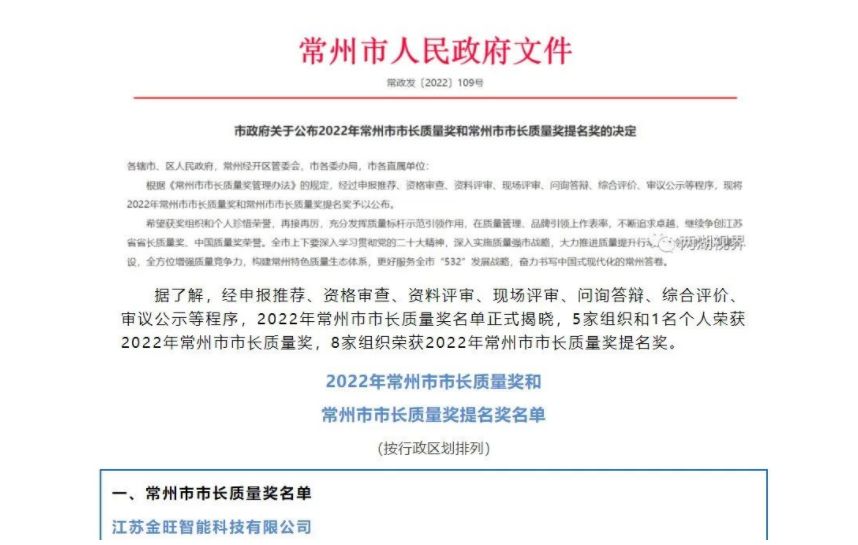 2022年,金旺智能主要獲得榮譽(yù):江蘇省智能制造領(lǐng)軍服務(wù)機(jī)構(gòu);常州市市長(zhǎng)質(zhì)量獎(jiǎng);江蘇精品-定容式定量液體灌裝機(jī);中國(guó)農(nóng)藥工業(yè)協(xié)會(huì)創(chuàng)新貢獻(xiàn)一等獎(jiǎng);兩化融合3A試點(diǎn);與河海大學(xué)成立江蘇省研究生工作站等。金旺智能科技創(chuàng)新企業(yè)發(fā)展已成大勢(shì),獨(dú)運(yùn)匠心,再結(jié)碩果。