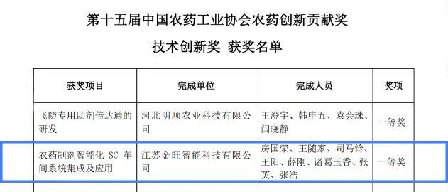 再添榮譽(yù) | 金旺智能榮獲第十五屆農(nóng)藥“創(chuàng)新貢獻(xiàn)獎(jiǎng)”技術(shù)創(chuàng)新一等獎(jiǎng)