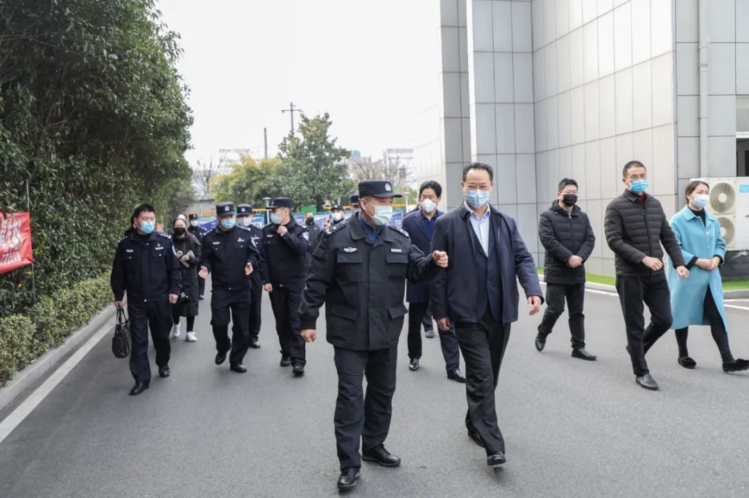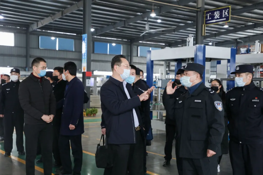 常州市公安局副局長徐衛(wèi)東帶隊(duì),金壇區(qū)人民政府副區(qū)長、常州市公安局金壇分局局長王曉航陪同,認(rèn)真聽取江蘇金旺智能科技有限公司董事長房國榮針對企業(yè)疫情防控、技術(shù)研發(fā)、防疫物資供應(yīng)等情況匯報(bào),對企業(yè)細(xì)化疫情防控舉措、助力防疫物資供應(yīng)予以肯定。
