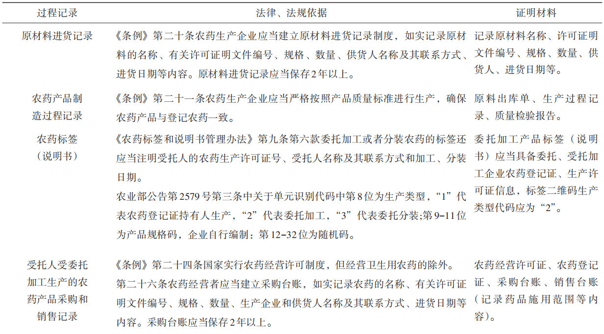 表1 農(nóng)藥委托加工過(guò)程法定記錄