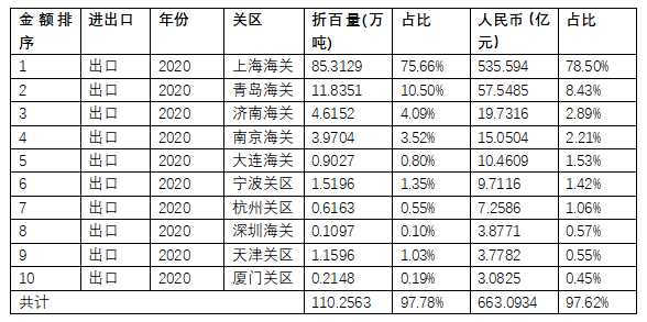 表8 2020年中國農(nóng)藥出口前十的關(guān)區(qū)數(shù)據(jù)分析