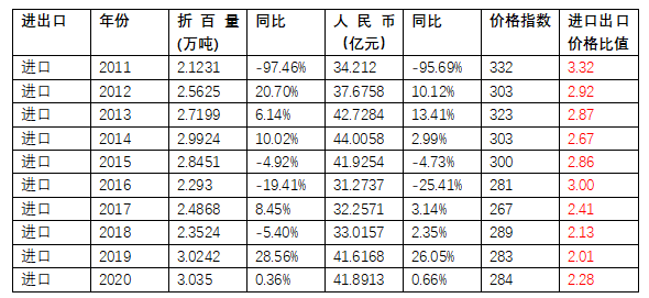 表3 2011—2020年中國農(nóng)藥進口數(shù)據(jù)分析