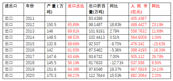 2011—2020年中國農(nóng)藥進出口數(shù)據(jù)統(tǒng)計