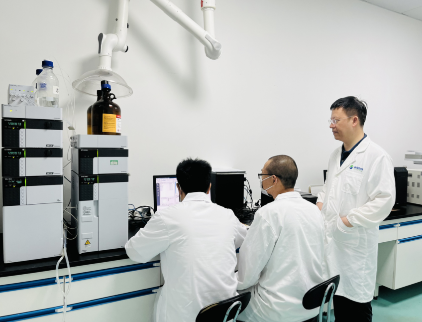 唐雪明(右一)和他的團(tuán)隊成員在實驗室做RNA生物農(nóng)藥的檢測分析