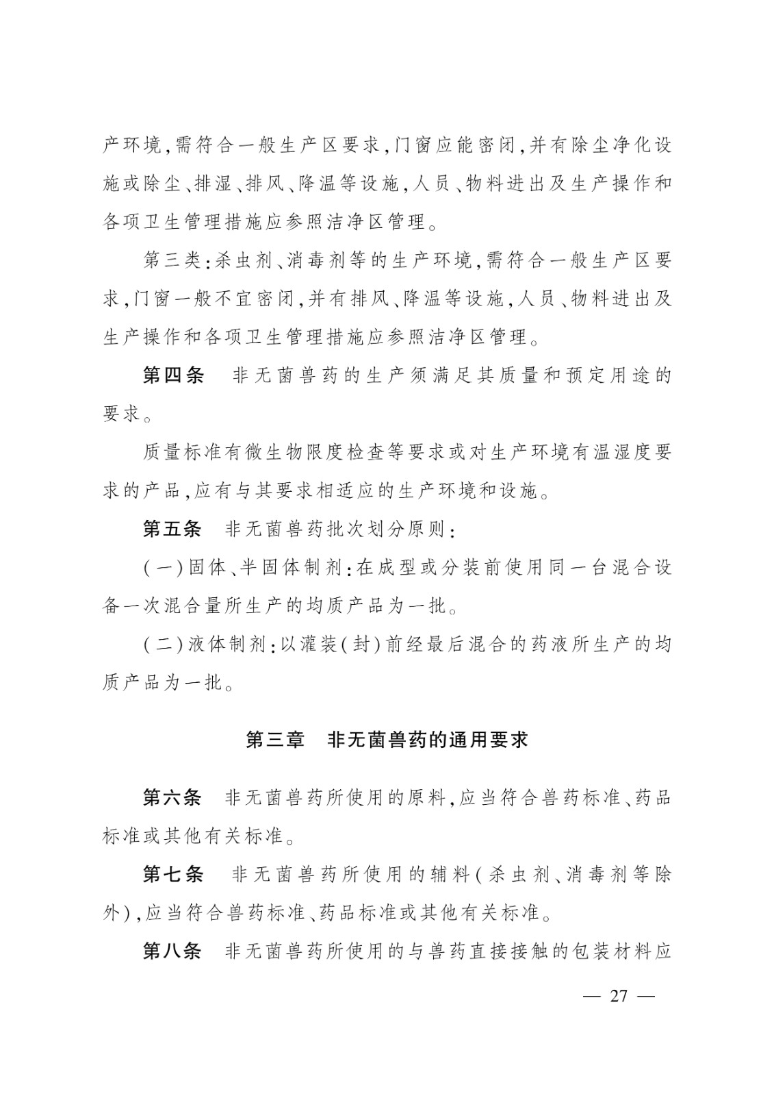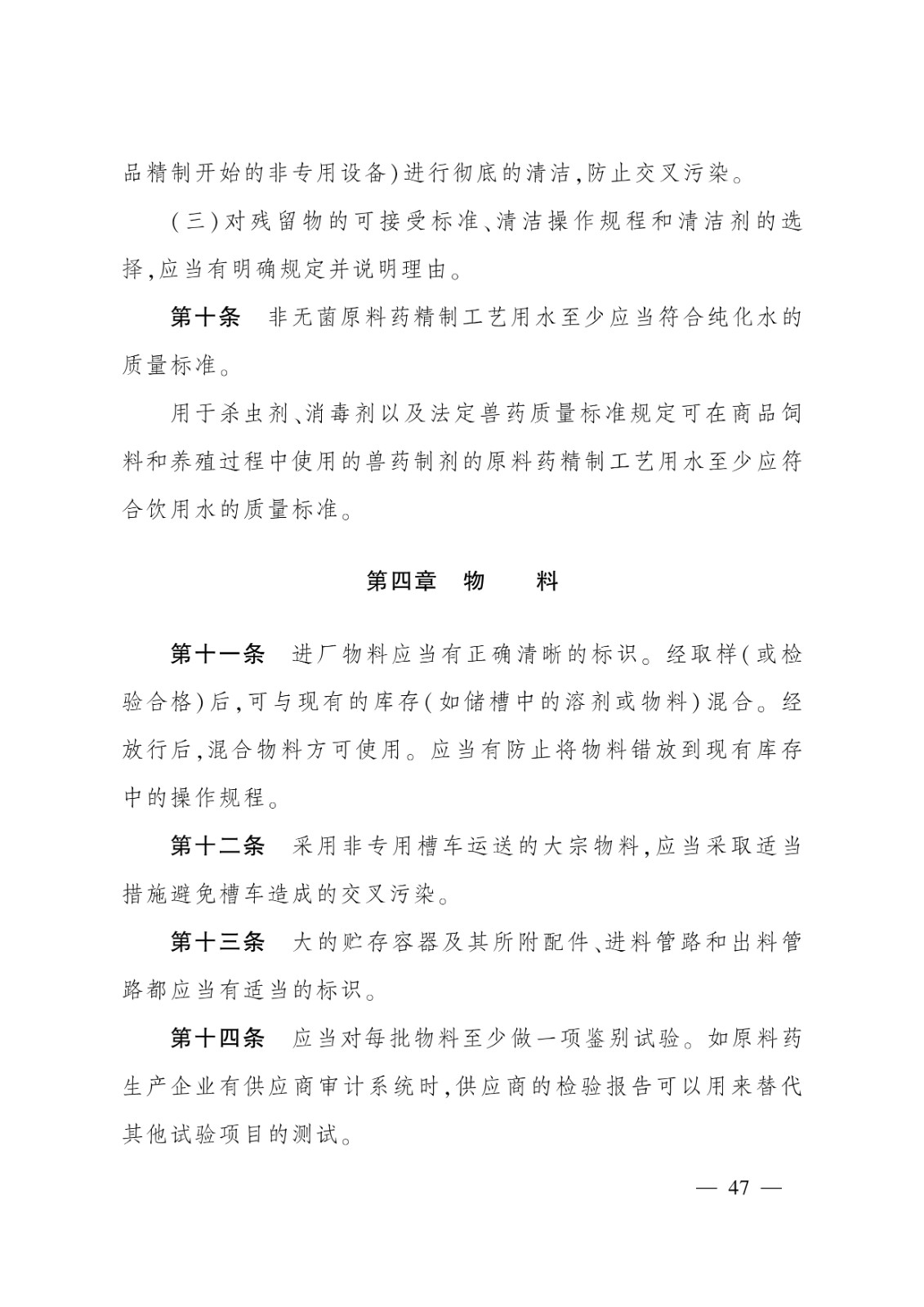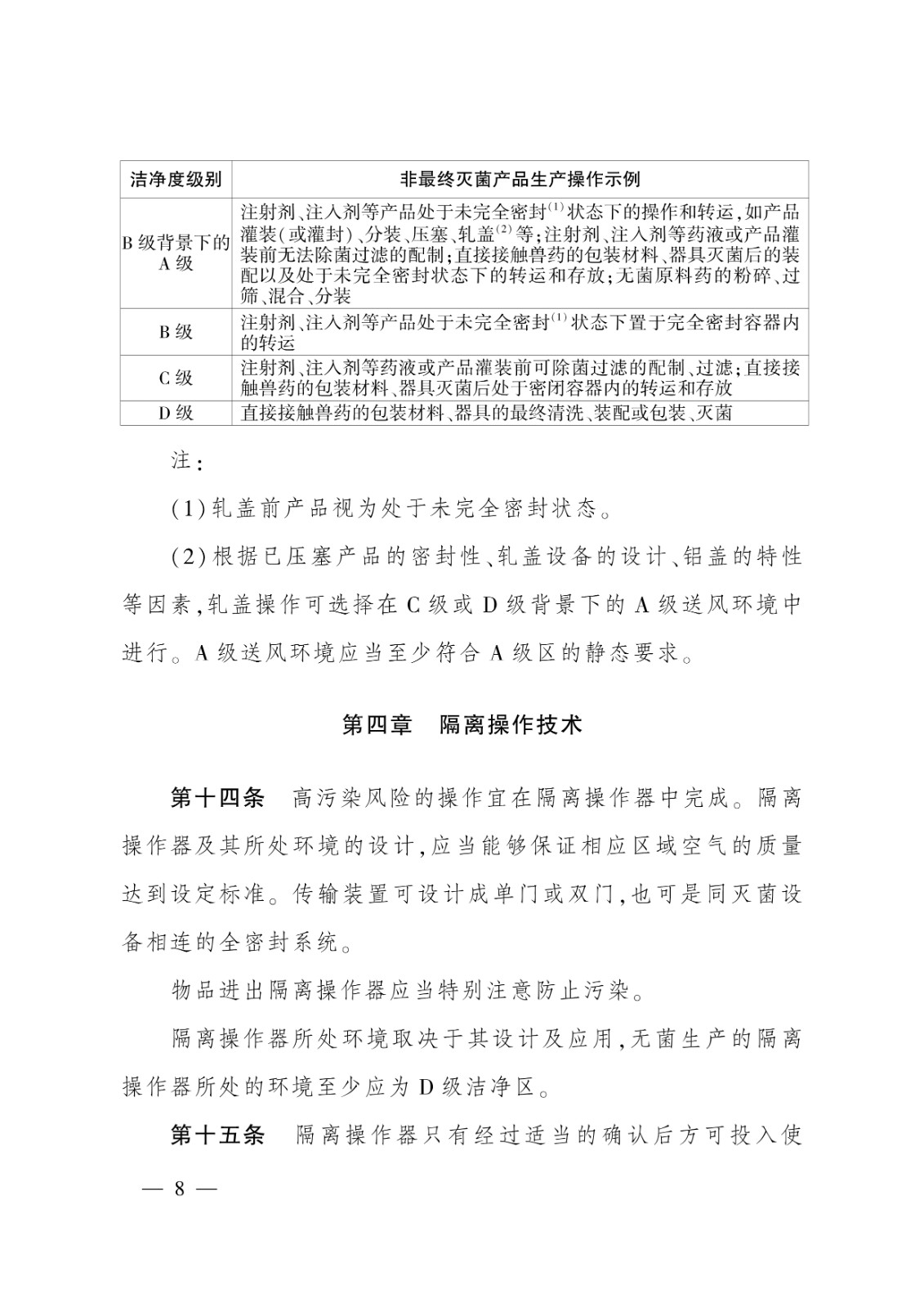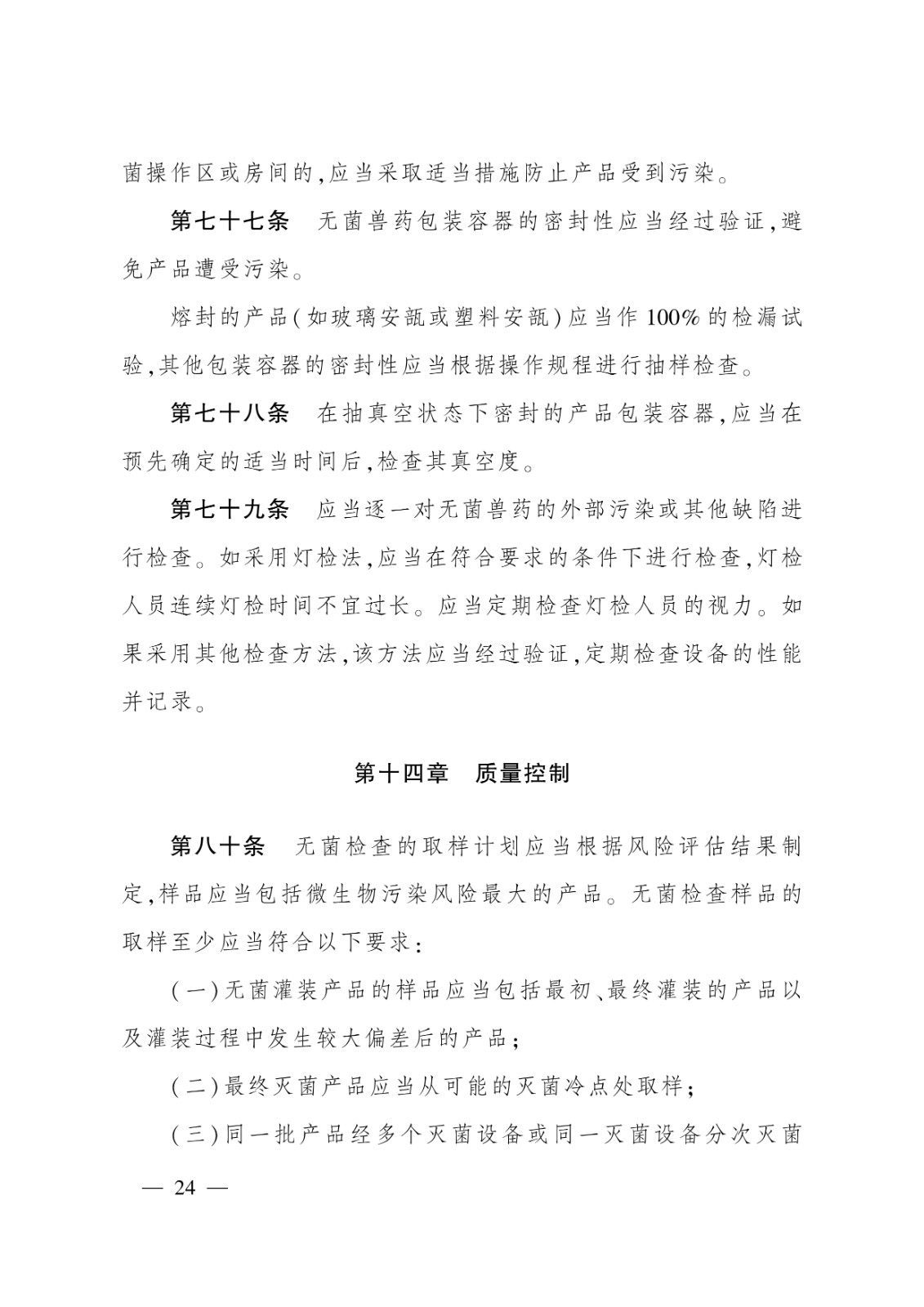 無(wú)菌獸藥生產(chǎn)質(zhì)量管理的特殊要求;2.非無(wú)菌獸藥生產(chǎn)質(zhì)量管理的特殊要求;3.獸用生物制品生產(chǎn)質(zhì)量管理的特殊要求;4.原料藥生產(chǎn)質(zhì)量管理的特殊要求;5.中藥制劑生產(chǎn)質(zhì)量管理的特殊要求