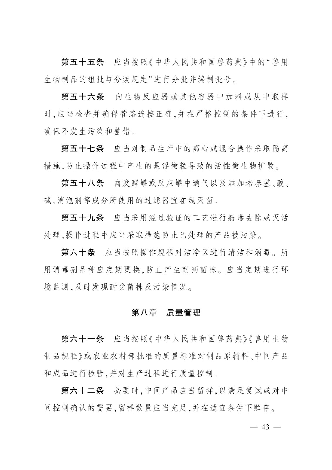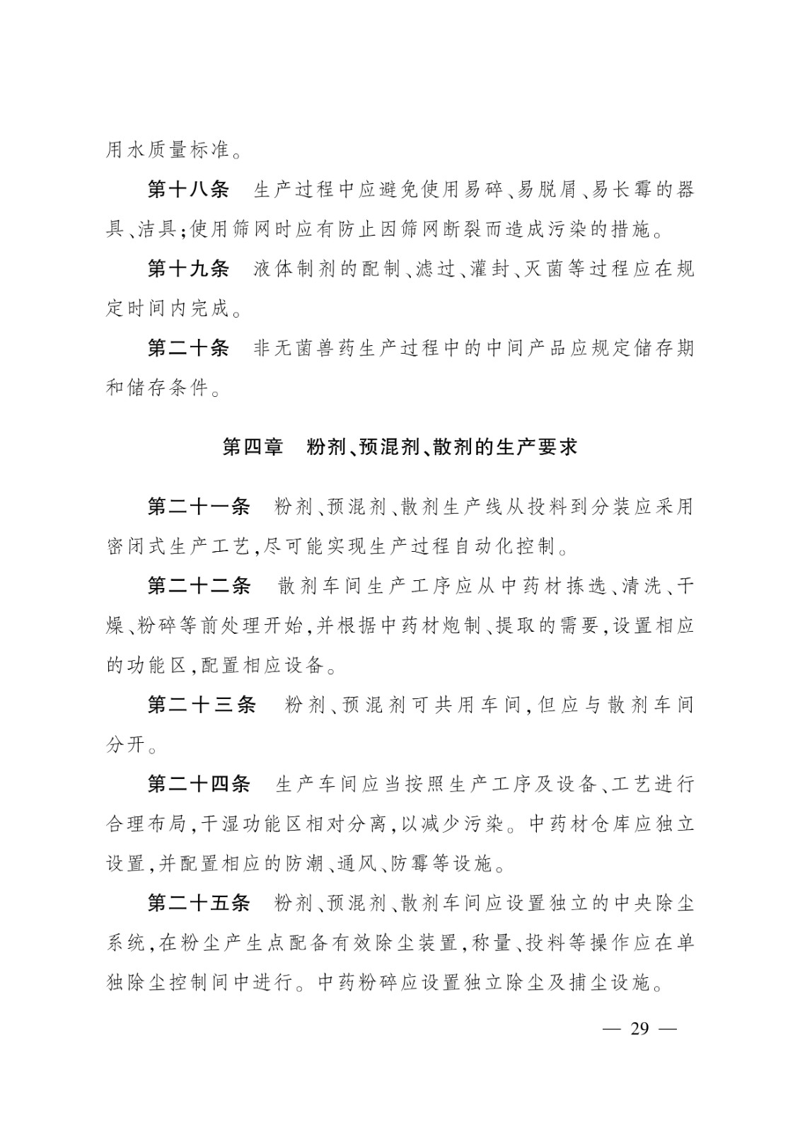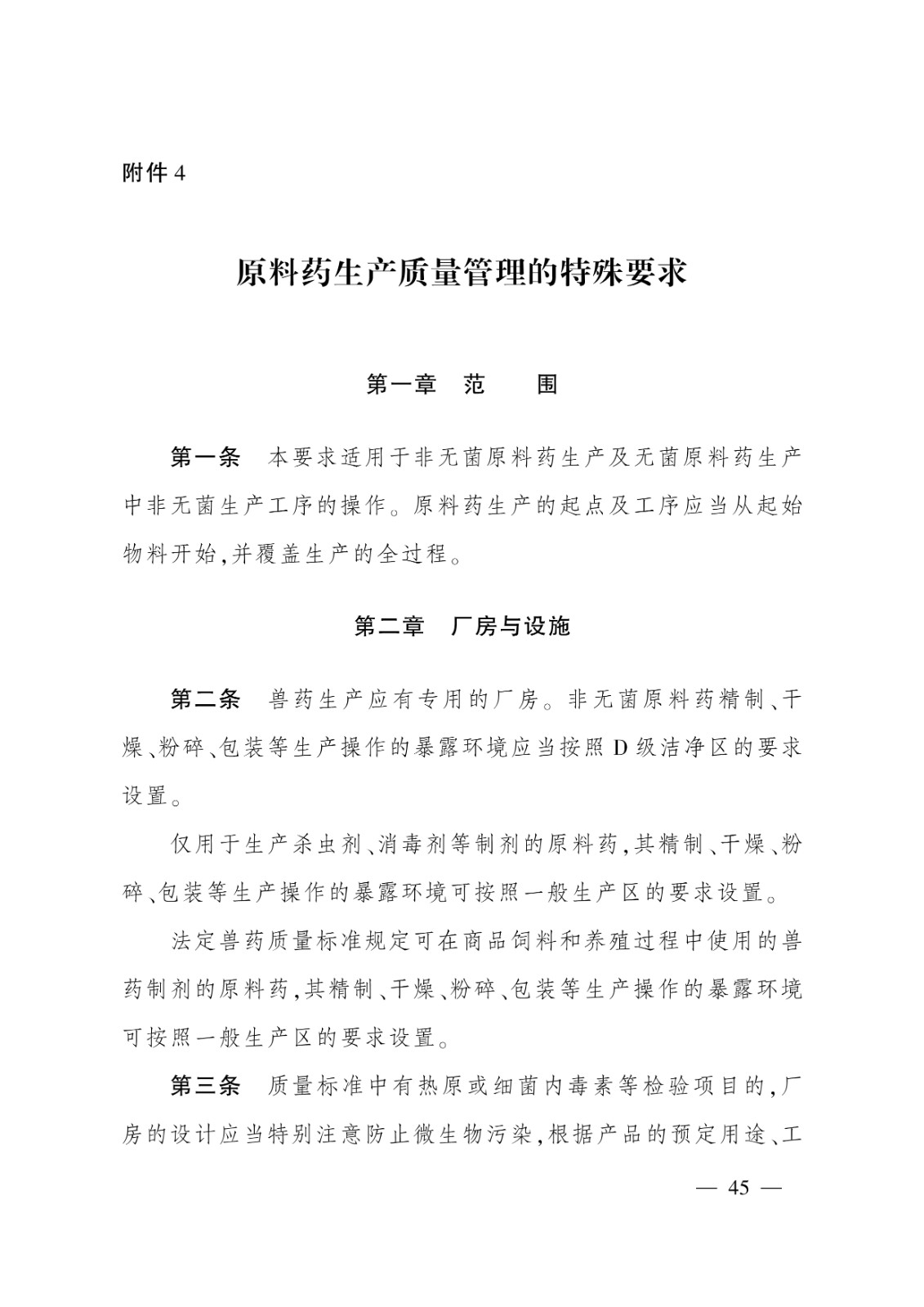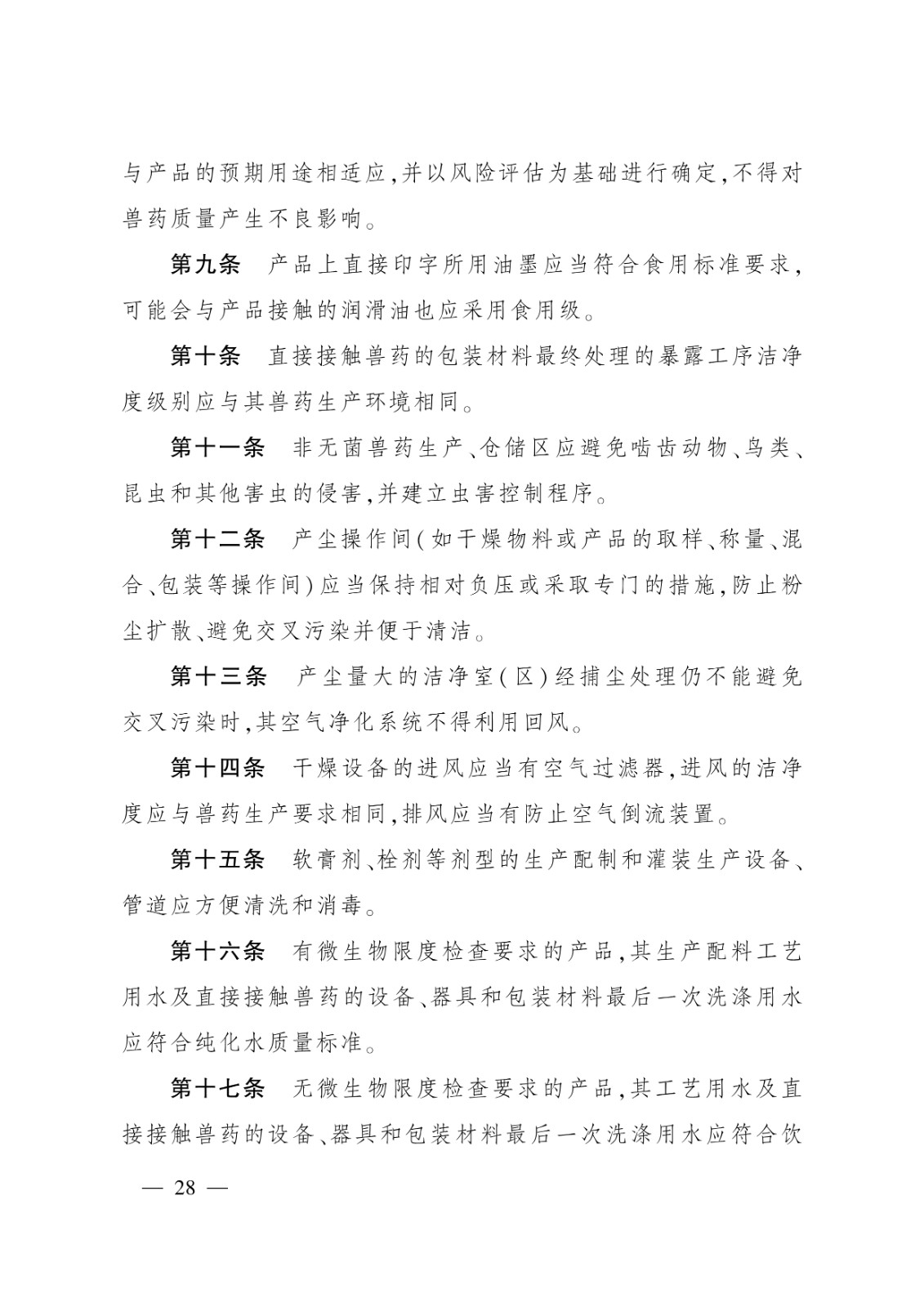 無(wú)菌獸藥生產(chǎn)質(zhì)量管理的特殊要求;2.非無(wú)菌獸藥生產(chǎn)質(zhì)量管理的特殊要求;3.獸用生物制品生產(chǎn)質(zhì)量管理的特殊要求;4.原料藥生產(chǎn)質(zhì)量管理的特殊要求;5.中藥制劑生產(chǎn)質(zhì)量管理的特殊要求