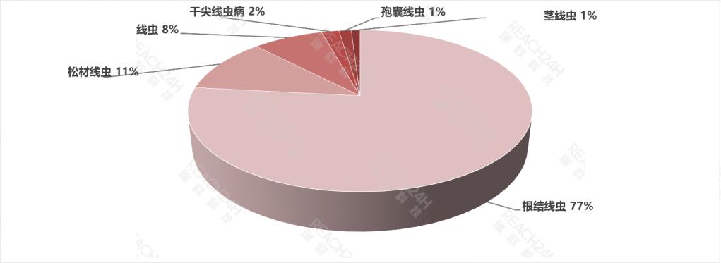 圖2 殺線蟲劑產(chǎn)品在線蟲種類上的登記情況(2023年9月22日)