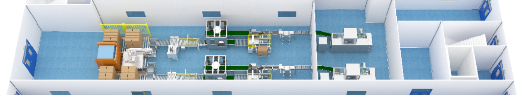 整個(gè)設(shè)計(jì)充分利用空間優(yōu)勢(shì),提升了自動(dòng)化程度,成品物料對(duì)接包裝設(shè)備更加方便快捷,同時(shí)釋放了一層包裝空間,實(shí)現(xiàn)多線同時(shí)生產(chǎn),減員增效!