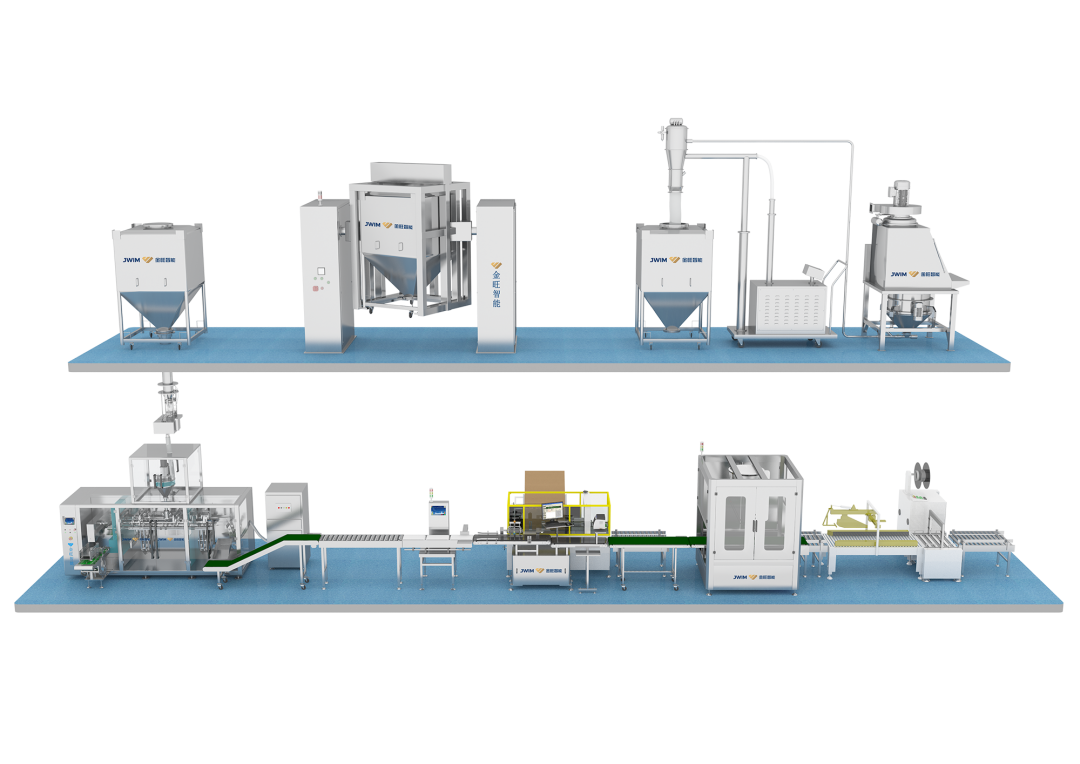 整個(gè)工藝流程從物料脫包、物料干燥、粉碎過篩、稱重配料、無塵投料、預(yù)混、轉(zhuǎn)運(yùn)、自動(dòng)包裝、檢測(cè)裝置、二維碼采集關(guān)聯(lián)、自動(dòng)封箱打包、自動(dòng)碼垛等設(shè)計(jì),生產(chǎn)過程自動(dòng)化程度高,降低企業(yè)用生產(chǎn)成本。