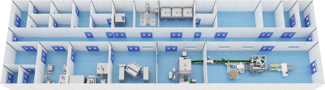 設(shè)計(jì)的整個(gè)車間內(nèi)人流、包材、成品、通道分離,布局科學(xué)合理,完全符合新版GMP要求,同時(shí)整個(gè)生產(chǎn)過程流暢快捷。所有設(shè)備采用密閉轉(zhuǎn)料,快裝鏈接,便于品規(guī)的切換和清洗。