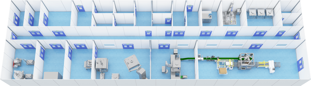 金旺智能按照國(guó)際獸藥GMP標(biāo)準(zhǔn),為廣大獸藥客戶量身打造智能化獸藥生產(chǎn)車間,助力獸藥制劑智能制造新發(fā)展!該車間適用于各類非無菌粉劑、散劑及預(yù)混劑的全自動(dòng)生產(chǎn),按照獸藥GMP標(biāo)準(zhǔn)設(shè)計(jì)工藝流程,布局了各種功能間,內(nèi)包間,外包間,通道等。
